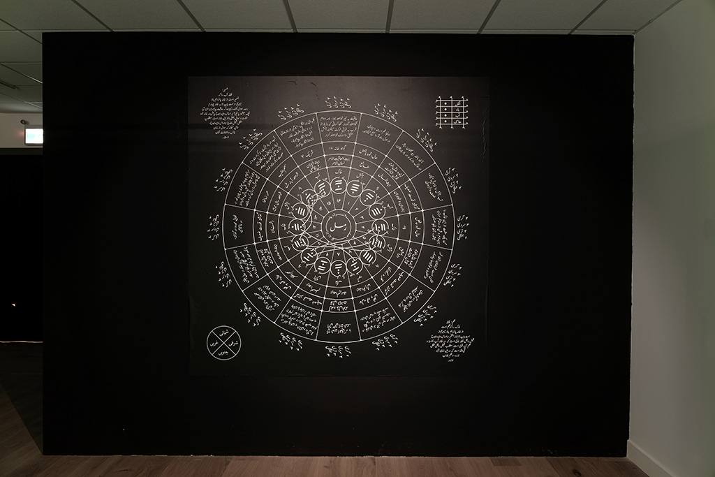 The exhibition focuses on artist Shirin Fahimi’s ongoing exploration of the sand divination method, Ilm al Raml or geomancy.